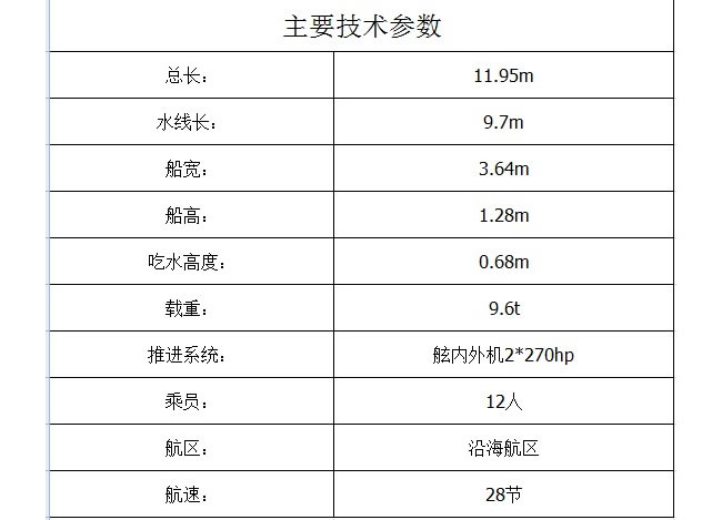 由于使用世界著名的深V形船體和外傾式船艏技術(shù),經(jīng)過(guò)反復(fù)試驗(yàn)和實(shí)際使用,證明這種鋁合金船體在航行和操作上優(yōu)于玻璃鋼船。航行極其平穩(wěn)。舒適,猶如永遠(yuǎn)航行在平靜如鏡的水面上。