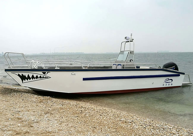 該類型鋁合金多功能登陸艇可廣泛應(yīng)用于休閑釣魚,搜尋救援,巡邏執(zhí)法,短途人員物資運輸,水上清污等用途。該類型艇的優(yōu)點是其多樣化的用途和強(qiáng)大的運輸能力。鋁合金艇與傳統(tǒng)玻璃鋼及鋼制船艇相比具有強(qiáng)度高,自重輕,耐腐蝕,易維護(hù),結(jié)實耐用,綠色環(huán)保,性價比高等優(yōu)點,已逐漸成為未來中國的中小型船艇行業(yè)發(fā)展趨勢。
