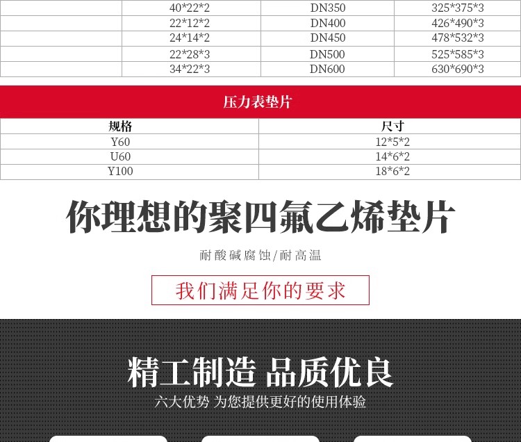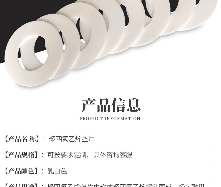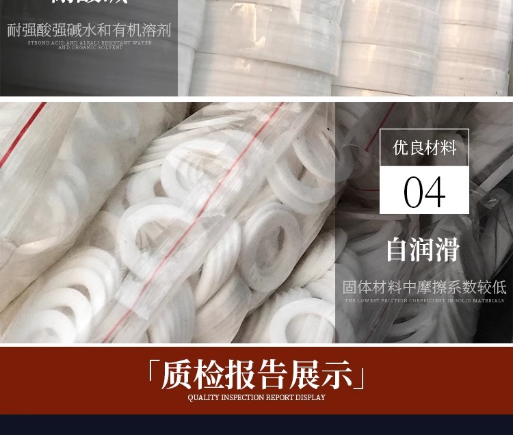 聚四氟乙烯墊片是一種以聚四氟乙烯為主要材料的墊片,國(guó)外又叫PTFE墊片或Teflon(鐵氟龍)墊片。它是由聚四氟乙烯棒、管、板經(jīng)機(jī)械車(chē)削或裁切而成的平墊片、V形墊片、活塞環(huán)、球閥墊圈等。聚四氟乙烯墊片適用于溫度、壓力交變劇烈的密封部位,是管道、閥門(mén)、泵、換熱器、塔、人孔、手孔等法蘭連接處的靜密封元件。由于聚四氟乙烯本身具有良好的耐腐蝕性能,而且物理性能穩(wěn)定,因此在鋼鐵電力、石油化工等行業(yè)得到廣泛的應(yīng)用。